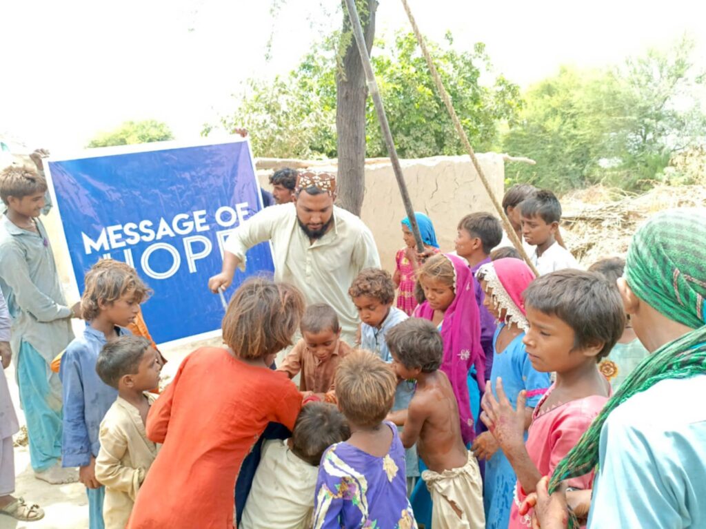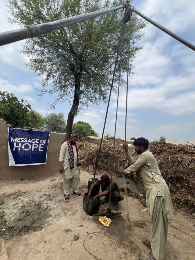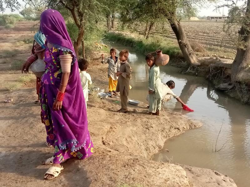 On August 14th, Pastor Naseer and his team dug a new well for the people living outside of Sanghar, Pakistan. This village was surviving off of water from an irrigation ditch, pictured below.